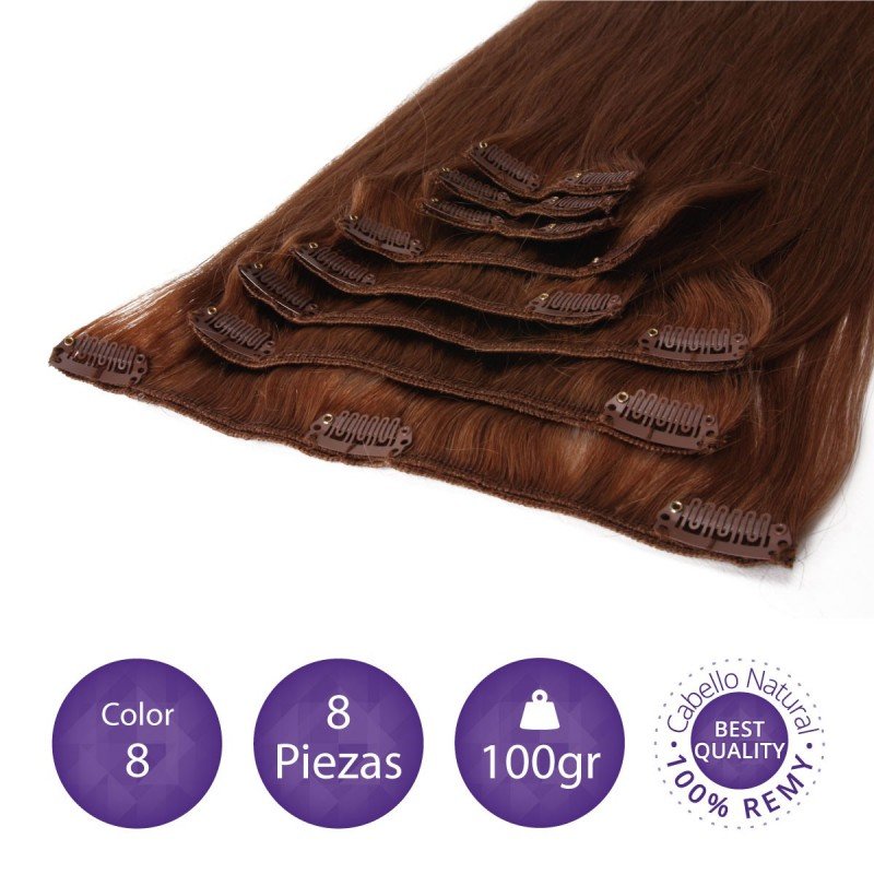 Color 8 rubio dorado - Extensiones clip lisas 8 piezas 100gr